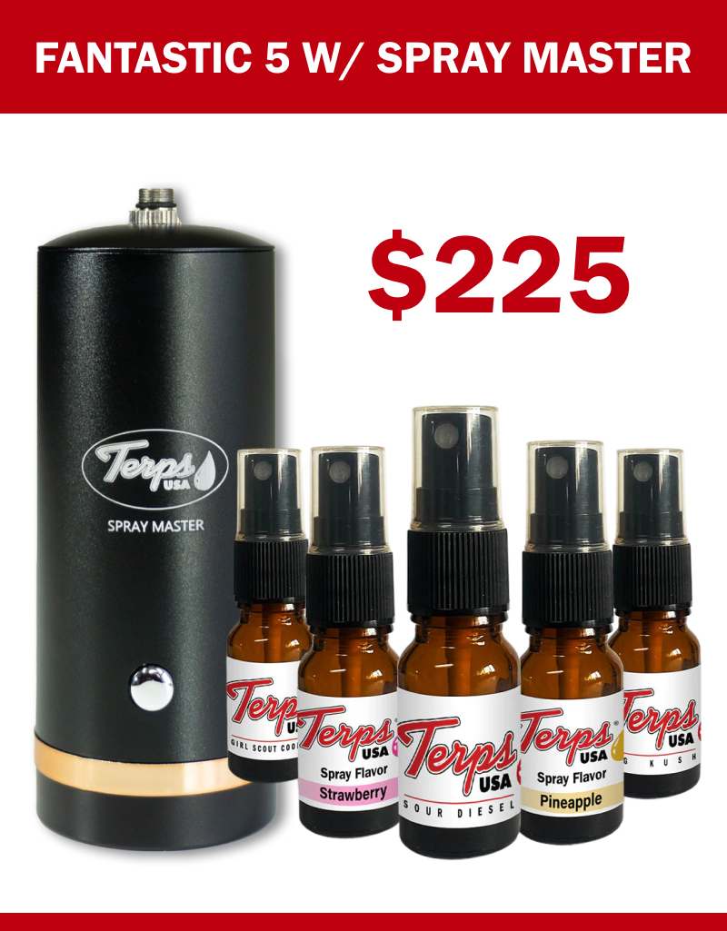 You get Five 15ml Bottles of Terpene Spray w/ Airtight Cap + a Spray Master!