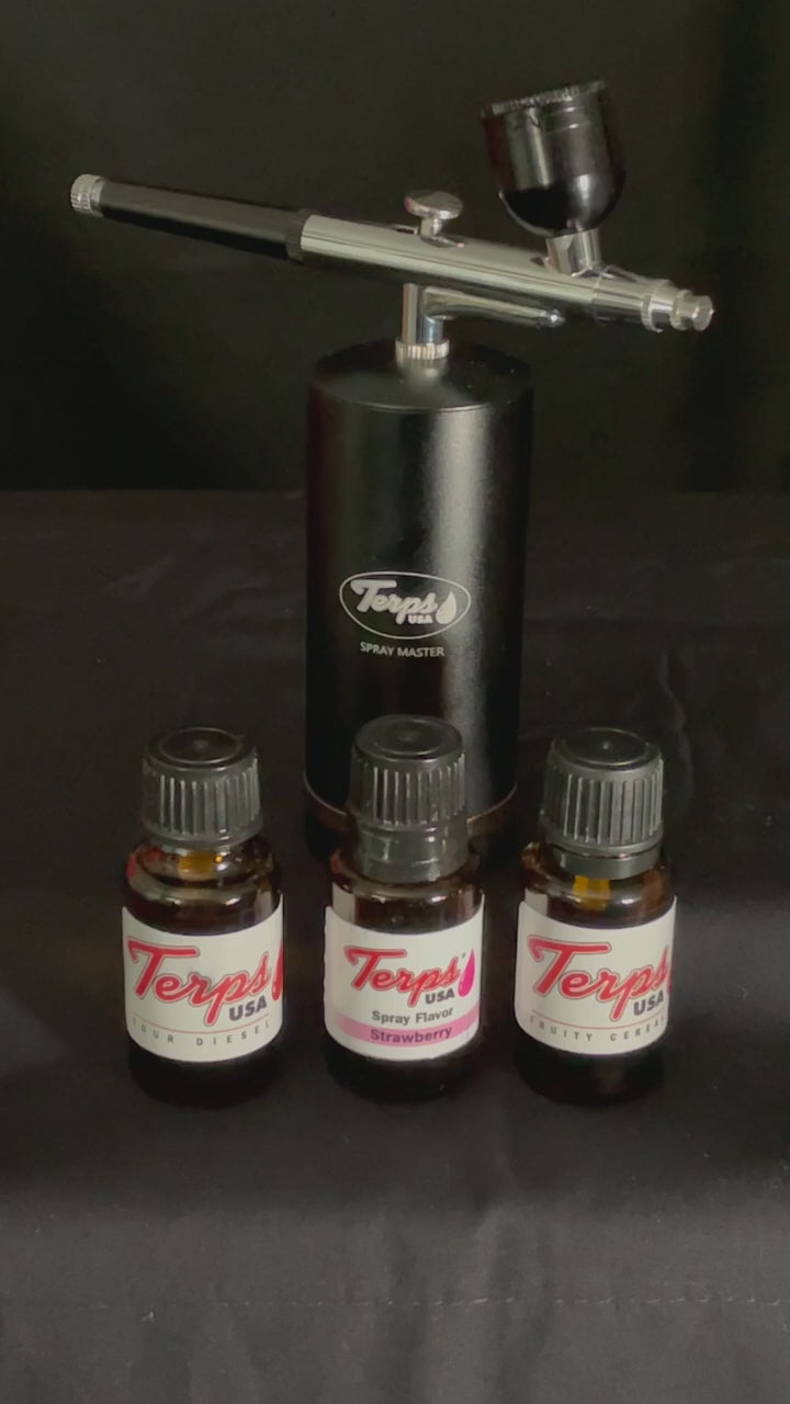 The Terps USA® Spray Master is a precision terpene spray gun designed to apply terpene sprays evenly across flower, buds, and weed.